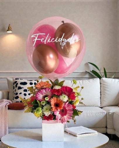 Festeja su cumple, su graduación, etc. para toda celebración este es el indicado: alegre, colorido-Una combinación de gerberas, claveles, y otras flores secundarias